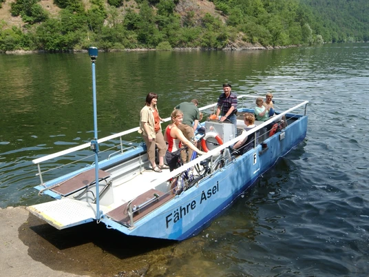Jährlich ab Gründonnerstag wird die Fähre ins Wasser gelassen und eine Überfahrt wird bei ausreichend Wasserstand wieder möglich. Schon seit 1921 bringt der Fährmann der Aseler Fähre Personen trockenen Fußes über den Edersee, zum anderen Ufer. Das Fährboot mit Bugladeklappe kann je Fahrt 11 Personen mit Fahrrädern übersetzen. Wenn ihr mit dem Rad um den See unterwegs seid, bietet sich hier eine Abkürzung mit der Fähre an.