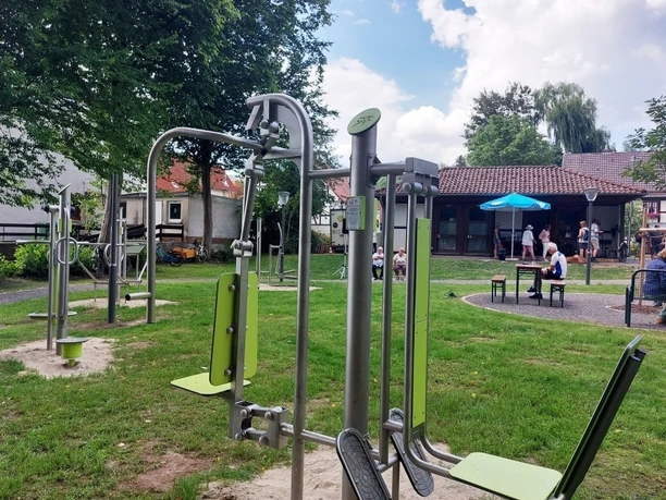 Die Pit-Pat-Anlage befindet sich mitten im Ort, direkt neben dem alten Gutshaus. Auf dem neu angelegten Dorfplatz gibt es außerdem eine Tischtennisplatte, ein Mensch-Ärgere-Dich-Nicht-Feld, verschiedene Mehrgenerationengeräte und einen Calisthenics-Bereich sowie verschiedene Aufenthalts- bzw. Ruhebereiche.